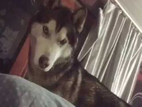正在被窩享用的女孩並沒有意識到哈士奇就在跟前,繼續在里面吃,突然被子活動了一下,引起了哈士奇的注意,並對著被子大叫,好像以確定聲音就是在此發出的。