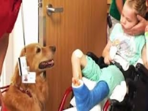 五歲的小男孩安心地躺在大金毛肚子上,一副特別美好幸福的畫面,然而坐在一旁的母親卻哭得不能自已。其實這個小男孩患有自閉症,他拒絕任何人(包括母親)的擁抱、親吻等親密舉動,卻在和服務犬Tornado的第一次見面中打開心門。輕易地接受了它,這一幕讓母親感動落淚。