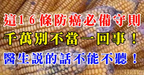 大家好,我是健康一點靈小編CA!今天要來說說關於「這16條防癌必備守則,千萬別不當一回事!醫生說的話不能不聽!」的事!不知道大家對於這個有多了解呢?一起來看看吧!