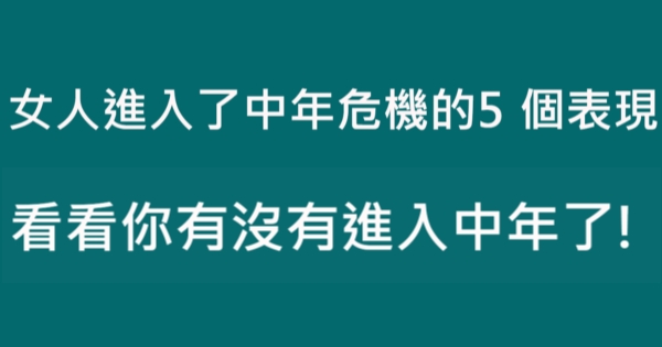 大家好,我是 Ant 今天來跟你說說 女人進入了中年危機的5個表現,看看你有沒有進入中年了!吧!讓我們來看看!