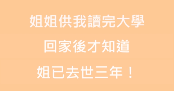 姐姐供我讀完大學,回家後才知道,姐已經去世三年!