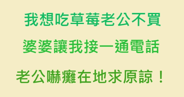 我想吃草莓老公卻不買,婆婆讓我接聽一通電話,老公嚇癱在地求原諒!