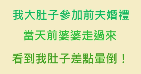 我大肚子參加前夫婚禮,當天前婆婆走來,看到我肚子差點暈倒!