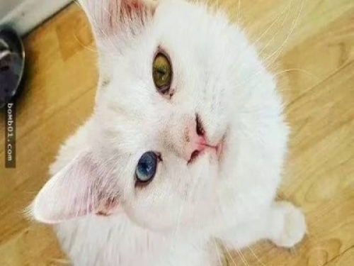 ▼Tiho擁有天生的異色瞳,一隻眼睛是褐色,另一只是藍色,飼主一回家就能看到他乖乖的待在門邊等候。