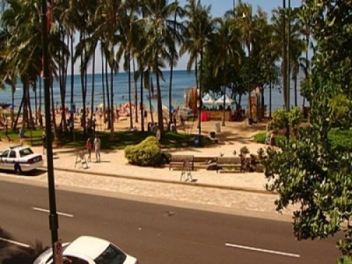 我們住在檀香山的市中心,距離被譽為夏威夷最美麗的海岸——威基基海灘隻隔兩條街。半自助遊最大好的好處是可以自由的安排時間,每天的清晨和傍晚來到這片海灘踏浪、發呆。
