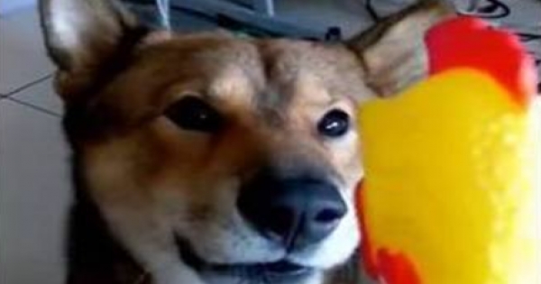 原來這天鏟屎管是為了和自家的柴犬狗狗一起玩耍拿出了一樣新型玩具,一個讓人聽起來就受不了的慘叫玩具雞。(此時此刻,我的腦海里已經浮現了那個充滿魔性的聲音啦!)