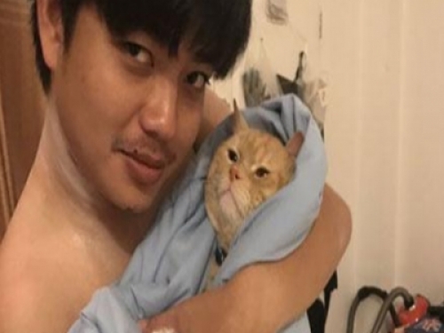 這位男子,很愛自己養的橘貓,已經到了寸步不離的地步了,可是我的哥,你也考慮下貓咪的感受,看它的眼神,此時無聲勝有聲呐......