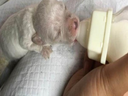 下班路上發現一個盒子里嗚嗚叫!打開之後看到一隻白色的小奶狗,沒想太多就把盒子抱回了家,順便買了奶粉,寵物店老板說只能抱著試試的心態因為小狗太小了,說目測只有幾天,不過還好回家就肯吃了~