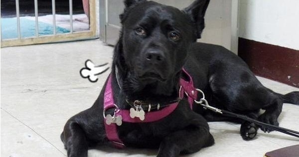 狗狗因長的一臉殺氣客人怕怕!黑狗大哥被綁無奈斜眼!