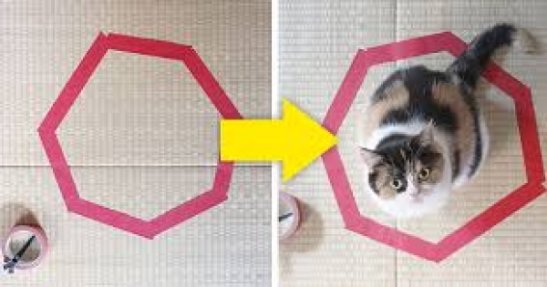 不過,近日國外的一些鏟屎官就又發現了貓咪身上另一種詭異的行為。有人在家做了一個實驗,只要是在家的地面上用膠帶圈成一個圓圈或者多邊形出來,家中的貓咪都會不出意外的自己走進去。結果驚人的相似