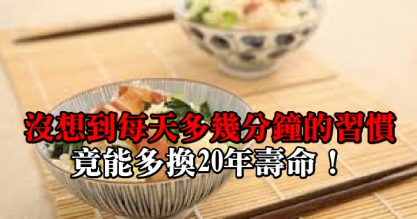 用“短平快”形容現代人吃飯的節奏一點也不過分。但是,一再壓縮吃飯時間,也是在壓縮我們的壽命。專家建議,用15-20分鍾吃早餐,中、晚餐則用30分鍾左右,每口飯菜最好咀嚼25-50次。