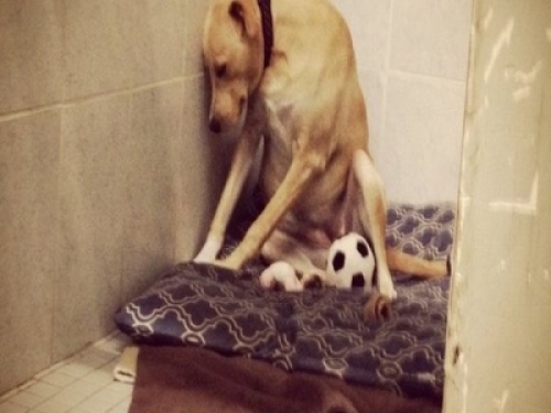 因為,它剛剛被自己的主人送到這兒,動物救助中心,而這,已經是它短暫的一生中,第二次來到這個地方了。