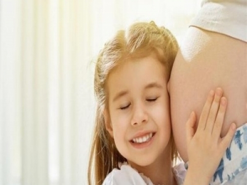 “寶寶,你要乖哦,別踢媽媽肚子。”