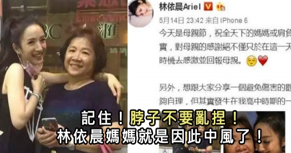 脖子千萬不要亂捏!林依晨媽媽就是因此中風了!