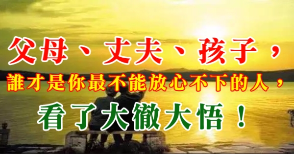 大家好,我是蘇小編,今天來跟你說說 你父母、丈夫、孩子,誰才是你最不能放心不下的人,看了大徹大悟!一起來看看吧!真的會讓你有深刻體悟!