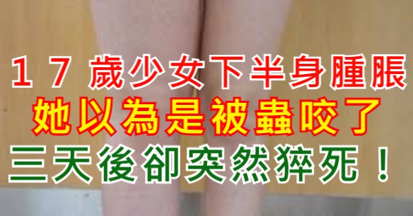 17歲少女下半身腫脹,她以為是被蟲咬了,三天後突然猝死!