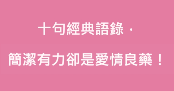 大家好,今天來跟你說說 十句經典語錄,簡潔有力卻是愛情良藥!