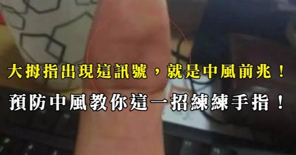 大家好,我是健康一點靈小編Uber!今天要來說說關於「大拇指出現這一訊號,就是中風前兆!預防中風教你這一招練練手指!」的事!不知道大家對於這個有多了解呢?一起來看看吧!