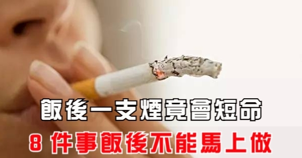 大家好,我是Tammy 今天來跟你說說 飯後一支煙竟會短命!這8件事飯後千萬不能馬上做吧!