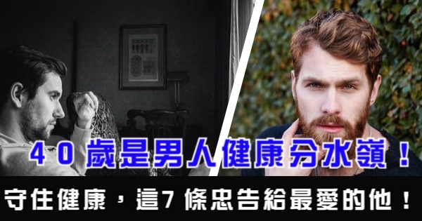 40歲是男人健康分水嶺!守住健康,這7條忠告給最愛的他!!