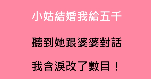哈摟哈摟各位讀者~~我是有錢人這麼想小編Choco!今天要來說說關於「小姑結婚我給五千,聽到她跟婆婆對話,我含淚改了數目!」,不知道大家有沒有興趣呢!一起來看看是怎麼樣的事吧!