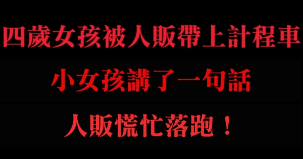 哈摟哈摟親愛的大家~~我是有錢人這麼想小編Choco!今天要來說說關「四歲女孩被人販帶上計程車,小女孩講了一句話,人販慌忙落跑!」的事件!讓我們一起來看看吧!