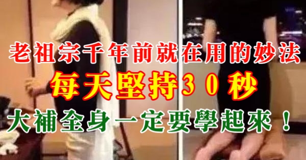 俗話說得好!身體健康者常年輕;無負於人者常富有。大家好,我是Ant小編!讓我們一起來看看今天要討論的老祖宗千年前就在用的妙法,每天堅持30秒,大補全身一定要學起來!吧!
