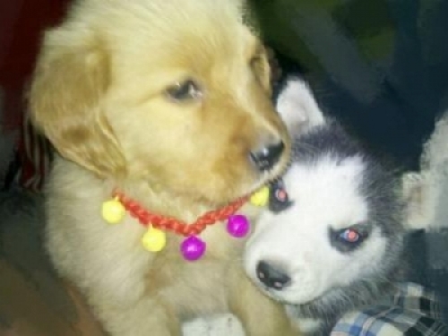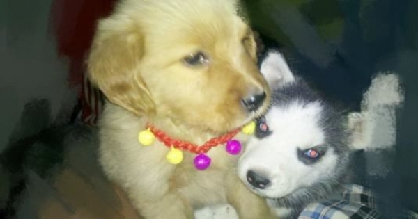 金毛不小心將鄰居哈士奇的小狗叼回家,結果哈士奇竟然...金毛是很開心~但主人卻很想哭!