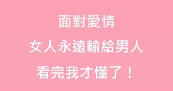 看完後是不是覺得Louis小編在有錢人這麼想分享的文章很好呢?想看更多好文,或是喜歡有錢人這麼想的文章的話,可以按讚追蹤真愛每一天並分享這篇面對愛情,女人為什麼永遠輸給男人,看完我才懂了!出去給大家一起看看喔!