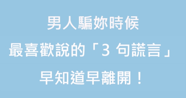 大家好,我是有錢人這麼想小編Louis!今天要來說說關於男人騙妳時候最喜歡說的「3句謊言」,早知道早離開!的事!不知道大家對於這個有多了解呢?一起來看看吧!