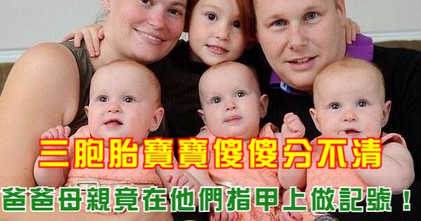 大家好,我是Ant 今天來跟你說說 三胞胎寶寶傻傻分不清,爸爸母親竟在他們指甲上做記號!吧!