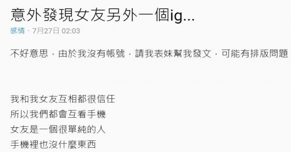 發現女友有另一個千篇貼文的IG帳號,點開才意外看清她不為人知的雙重真面目!