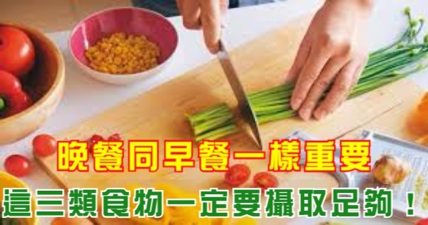 晚餐同早餐一樣重要,這三類食物一定要攝取足夠!!!