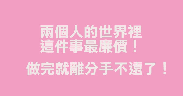 必看!兩個人的世界裡這件事最廉價!做完就離分手不遠了!