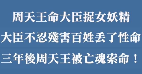 大家好,我是有錢人這麼想小編Sophia!今天要來說說關於「周天王命大臣捉女妖精,大臣不忍殘害百姓,丟了性命,三年後,周天王被亡魂索命而亡!」的事!不知道大家對於這個有多了解呢?一起來看看吧!