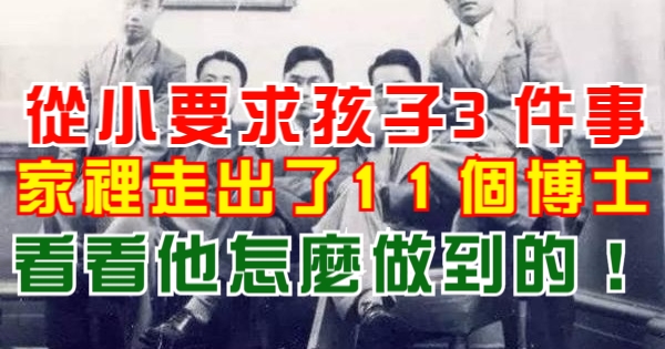 大家好,我是 葡萄 今天來跟你說說 從小要求孩子3件事,家裡走出了11個博士,看看他怎麼做到的!吧!讓我們來看看!