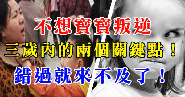 大家好,我是小寶貝媽媽經小編CA!今天要來說說關於「不想寶寶叛逆,三歲內的兩個關鍵點!錯過就來不及了!」的事!不知道大家對於這個有多了解呢?一起來看看吧!