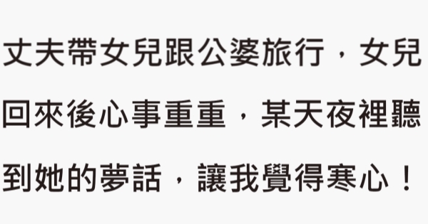 丈夫帶女兒跟公婆旅行,女兒回來後心事重重,夜裡聽到她的夢話,讓我覺得寒心!