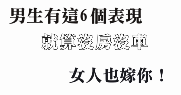 大家好,我是有錢人這麼想小編Sophia!今天要來說說關於男生有這6個表現,就算沒房沒車,女人也嫁你!的事!不知道大家對於這個有多了解呢?一起來看看吧!