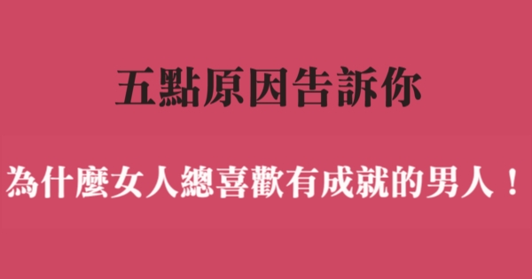 各位讀者安安阿~~我是有錢人這麼想小編Ant!今天要來說說關於「五點原因告訴你,為什麼女人總喜歡有成就的男人!」,不知道大家有沒有興趣呢!一起來看看吧!
