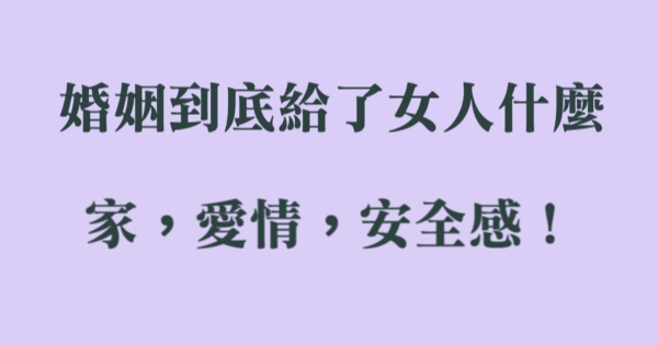 各位讀者安安阿~~我是有錢人這麼想小編Ant!今天要來說說關於「婚姻到底給了女人什麼,家,愛情,安全感!」,不知道大家有沒有興趣呢!一起來看看吧!