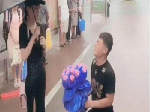 男子雨天跪地求婚,下一秒女孩的動作讓他尷尬不已,連路人也無語!!!