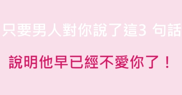 各位讀者安安阿~~我是小編Ant!今天要來說說關於「只要男人對你說了這3句話,說明他早已經不愛你了!」,不知道大家有沒有興趣呢!一起來看看吧!