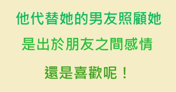 他代替她的男友照顧她,是出於朋友之間感情,還是喜歡呢!!!