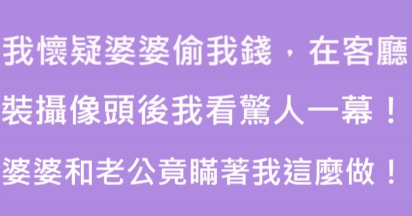 看完後是不是覺得Choco小編在有錢人這麼想分享的勵志故事文章讓人深思呢?想看更多好文,或是喜歡有錢人這麼想的文章的話,可以按讚追蹤投資理財周報並分享這篇「我懷疑婆婆偷我錢,在客廳裝攝像頭後我看驚人一幕!婆婆和老公竟瞞著我這麼做!」出去給大家一起看看!