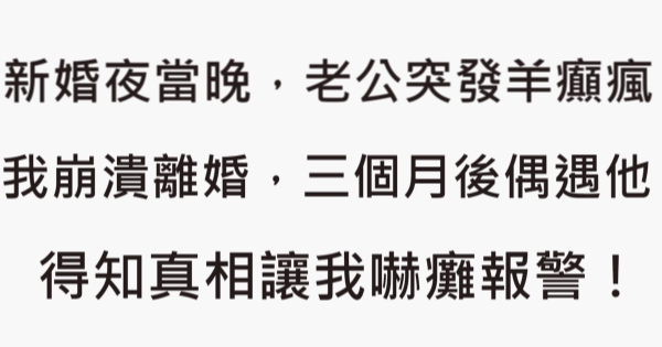 各位讀者安安阿~~我是有錢人這麼想小編Choco!今天要來說說關於「新婚夜當晚,老公突發羊癲瘋,我崩潰離婚,三個月後偶遇他,真相讓我嚇癱報警!」,不知道大家有沒有興趣呢!一起來看看吧!