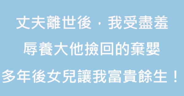 看完後是不是覺得Choco小編在有錢人這麼想分享的勵志故事文章讓人深思呢?想看更多好文,或是喜歡有錢人這麼想的文章的話,可以按讚追蹤正向的能量並分享這篇「丈夫離世後,我受盡羞辱養大他撿回的棄嬰,多年後女兒讓我富貴餘生!」出去給大家一起看看!