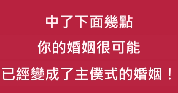 中了下面幾點,你的婚姻很可能已經變成了主僕式的婚姻!!!