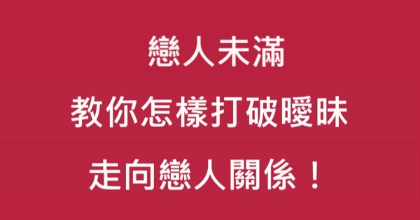 戀人未滿,教你怎樣打破曖昧,走向戀人關係!!!