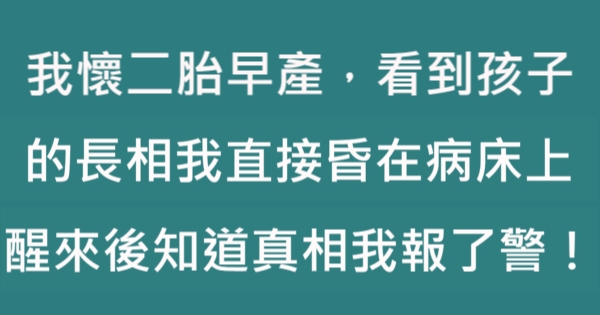 大家好,我是有錢人這麼想小編Choco!今天要來說說關於我懷二胎早產,看到孩子的長相我直接昏在病床上,醒來後知道真相我報了警!的事!不知道大家對於這個有多了解呢?一起來看看吧!
